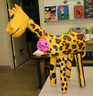 The Turtle, Giraffe, and Penguin are all created this year by some of my students in Art 3.